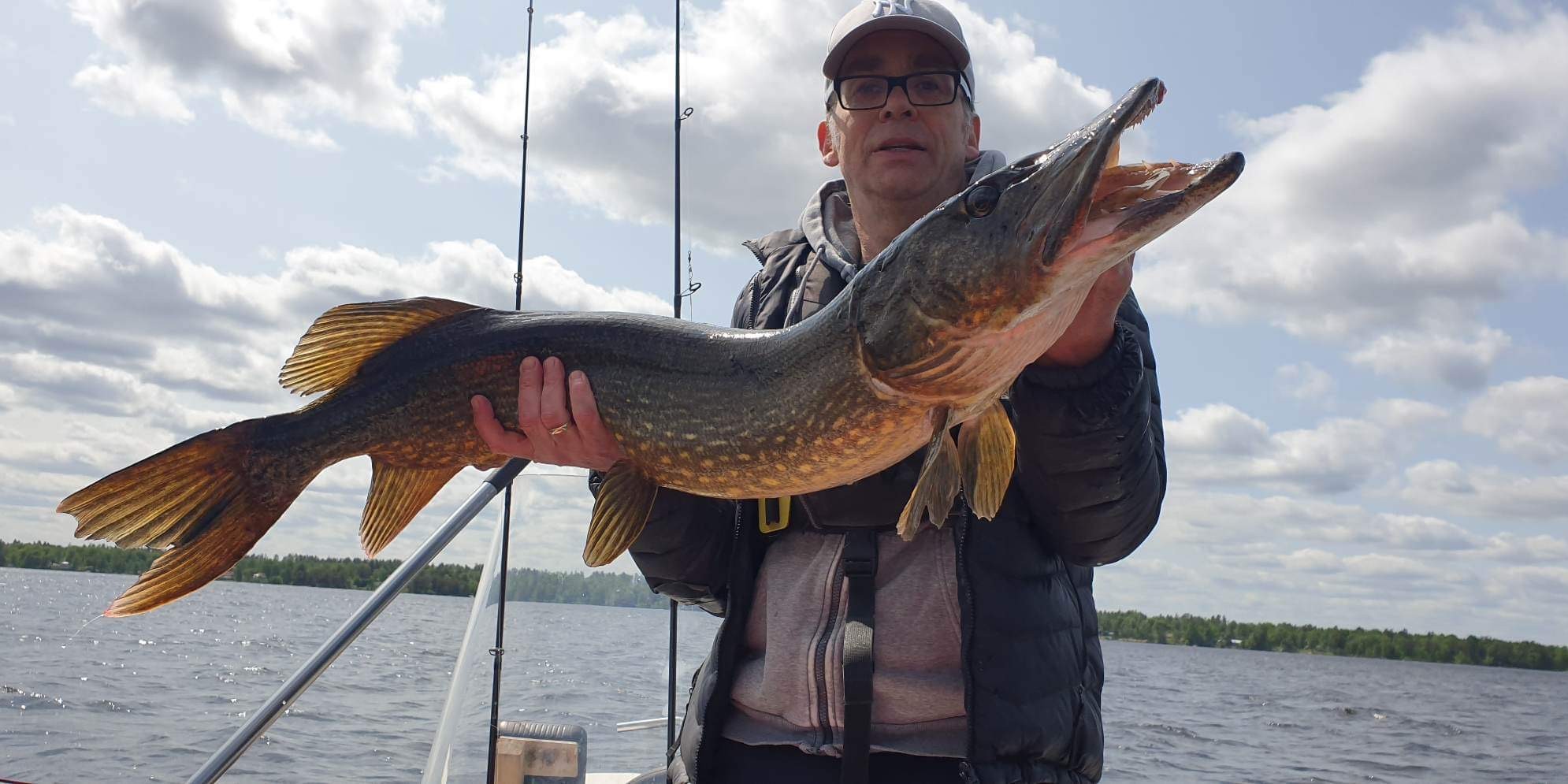 Im Jahr 2021 habe ich im Helgasjön einen meiner größten Hechte gefangen, der Hecht hat auf den Salmo Perch in der Farbe Uli Beyer Spezial gebissen, den ich in etwa 3‘5 Meter Tiefe geschleppt habe. Das Wetter ab diesem Tag war außergewöhnlich, es war windig, 4-5 Beaufort und das Wasser hatte eine fast gelbliche Färbung, kaum Sichttiefe. Immer wieder leichte Regenschauer. Ich war an dem Tag keine 2 Stunden auf dem Wasser, eine Rute in der Hand geschleppt und habe 3 Hechte zwischen 95 cm und 118 cm fangen können.